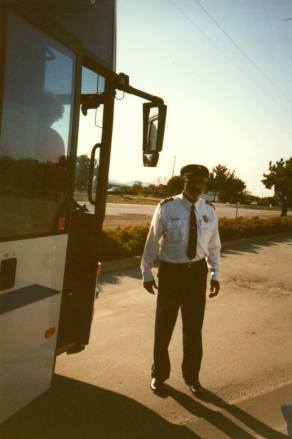 Hier ein Bild von unserem Busfahrer und/oder Reiseleiter. Dieser Mann war einfach ein Phaenomen. Waehrend der Fahrt lieferte er uns ununterbrochen Informationen ueber Geschichte und Geschichten der Gegend. Obendrein hatte er wirklich glaenzenden Sinn fuer Humor und es fehlte somit wirklich nicht an Unterhaltung.