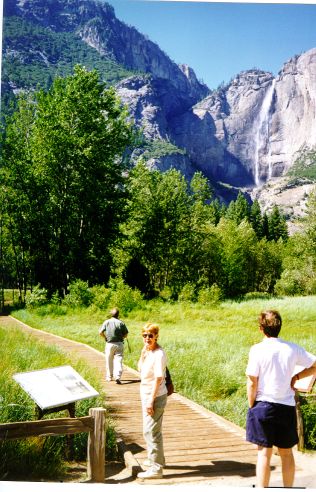 Die 'Yosemeti Falls' (Wasserfaelle) im Hintergrund